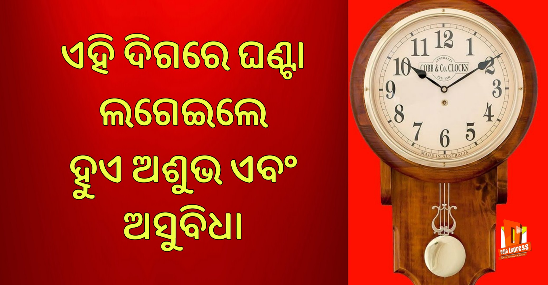 ନମସ୍କାର ବନ୍ଧୁଗଣ ଆମେ ଆପଣଙ୍କୁ ସ୍ୱାଗତ ଜଣାଉଛୁ ଆଜି ଆମେ ଆପଣଙ୍କୁ ଜଣେଆଇବୁ କି ବାସ୍ତୁରେ ଘଣ୍ଟା ଲଗେଇବାର ଶୁଭ ଓ ଅଶୁଭ ଦିଗ ଅଛି।ଏହା ଆମ ଜୀବନ ଉପରେ ସକାରତ୍ମକ ଓ ନକାରାତ୍ମକ ଉଭୟ ଭାବରେ ପ୍ରଭାବ ପକାନ୍ତି।ଆପଣ ଜାଣିଥିବେ ଆମ ସମସ୍ତଙ୍କ ଘରର କାନ୍ଥରେ ଘଣ୍ଟା ଲାଗିଥାଏ।ଲୋକମାନେ ଘରର ସେ ଜାଗାରେ ଲଗାନ୍ତି ଯେଉଁଠାରେ ସେମାନେ ସହଜରେ ସେ ଘଣ୍ଟା ଦେଖି ପାରିବେ।ଏମିତି କରିବା ଠିକ ନୁହେଁ ଏହା ଆମ ପାଇଁ ବହୁତ ବିପଦକୁ ଡାକି ଆଣି ପାରିବ।