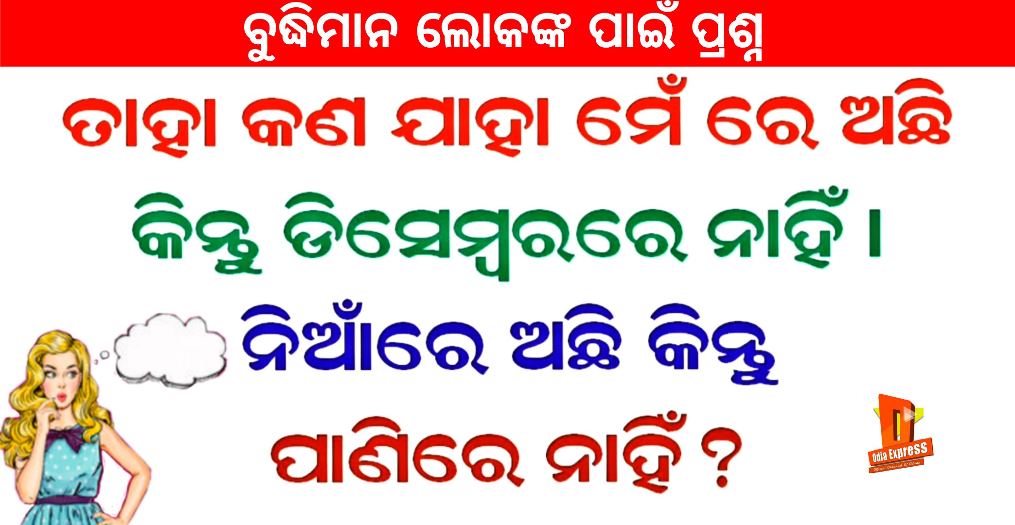 ଆଜିର ମଜାଦାର ପ୍ରଶ୍ନ – ତାହା କଣ ଯାହା ମଇଁ ରେ ଅଛି କିନ୍ତୁ ଡିସେମ୍ବରରେ ନାହିଁ – ନିଆଁ ରେ ଅଛି କିନ୍ତୁ ପାଣିରେ ନାହିଁ ? ବୁଦ୍ଧିମାନ ଲୋକ ଉତ୍ତର ଦିୟନ୍ତୁ..