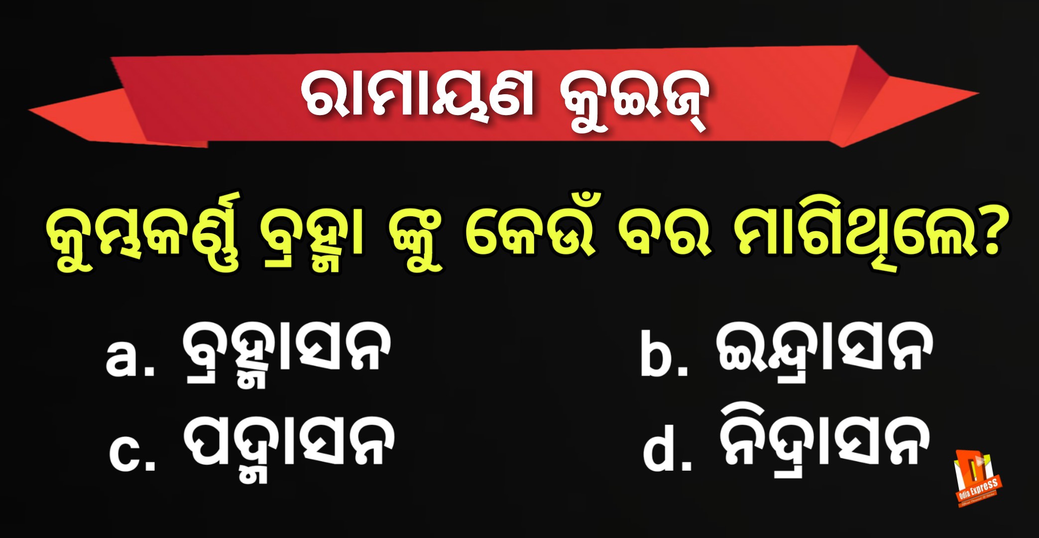 ଏବେ ଆସନ୍ତୁ ଜାଣିବା ପନ୍ଦର ନମ୍ବର୍ ପ୍ରଶ୍ନ। ପ୍ରଶ୍ନ ନମ୍ବର ୧୫:-ରାକ୍ଷାସ କୁମ୍ଭକର୍ଣ୍ଣ ବ୍ରହ୍ମାଙ୍କୁ କେଉଁ ବର ମାଗିବାକୁ ଯଜ୍ଞ କରିଥିଲା ?