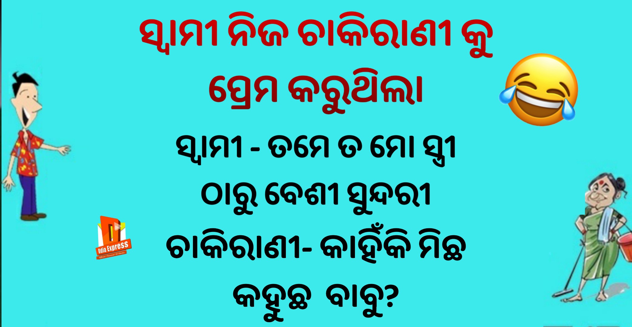 ସ୍ୱାମୀ ନିଜ ଚାକରାଣୀକୁ ପ୍ରେମ କରୁଥିଲା, ଦିନେ ସେ ଲୁଚିକରି ଚାକରାଣୀକୁ କହିଲେ ସ୍ୱାମୀ- ତୁମେ ମୋର ସ୍ତ୍ରୀଠାରୁ ବି ସୁନ୍ଦର ଅଟ , ଚାକରଣୀ- ମିଛ କୁହନି ମାଲିକ୍ ସ୍ୱମୀ-ଆରେ ନା ସତ କହୁଛି, ଚାକରାଣୀ- ଭଲ ଡ୍ରାଇଭର ତ କହୁଥିଲା, ମ୍ୟାଡାମ୍ ସାହେବଙ୍କ ଠାରୁ ବି ଅଧିକା ସୁନ୍ଦର ବୋଲି , ସ୍ୱମୀ –ବେହୋସ୍ ।