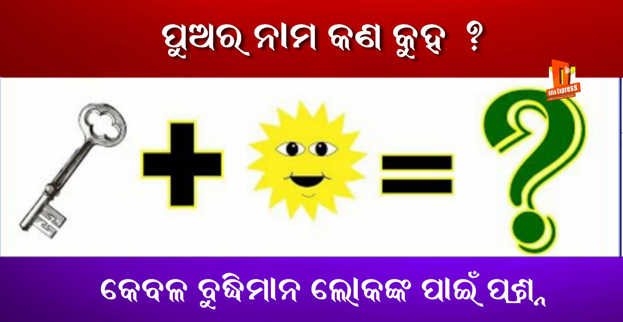 ଚିତ୍ର ଦେଖି ପଜଲ ର ସଠିକ ଉତ୍ତର କୁହ – ପ୍ରଥମ ଚିତ୍ର ରେ ଏକ ଚାବି ଓ ଆଉ ଏକ ଚିତ୍ର ରେ ସୂର୍ଯ୍ୟର ଚିତ୍ର ଦେଇଛି – ତେବେ ପୁଅଟିର ନାମ କଣ ଅଟେ ? ବୁଦ୍ଧିମାନ ଅଟନ୍ତି ଯଦି ଦିମାଗ ଲଗେଇକି ଉତ୍ତର କୁହନ୍ତୁ..