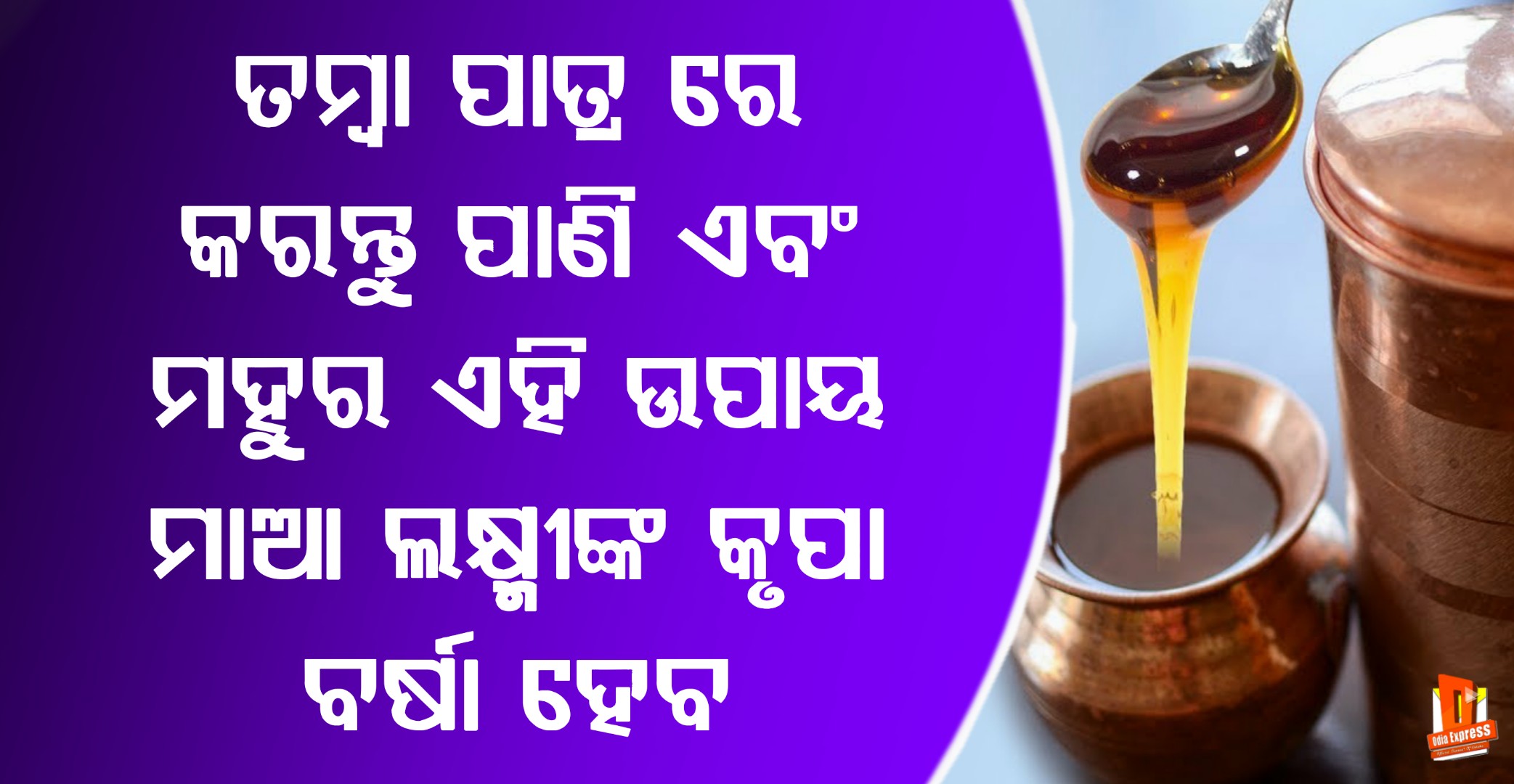 ତମ୍ବା ବାସନରେ ପାଣି ସହ ମହୁ ମିଶେଇ କରନ୍ତୁ ଏହି ପ୍ରୟୋଗ। ଦ୍ୱାରା କରିବେ ଲଷ୍ମୀ ଏବଂ ମିଳିବ ଭାଗ୍ୟର ସାଥ…